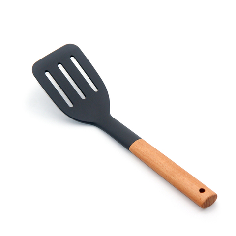 Casa e Utensílios De Cozinha Utensílios De Cozinha Antiaderente Silicone Slotted Turners com Punho De Madeira