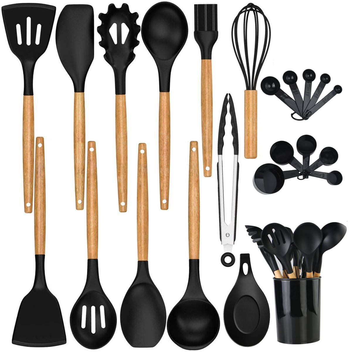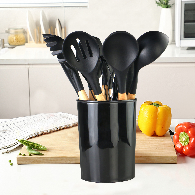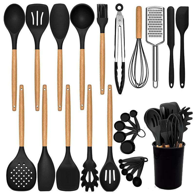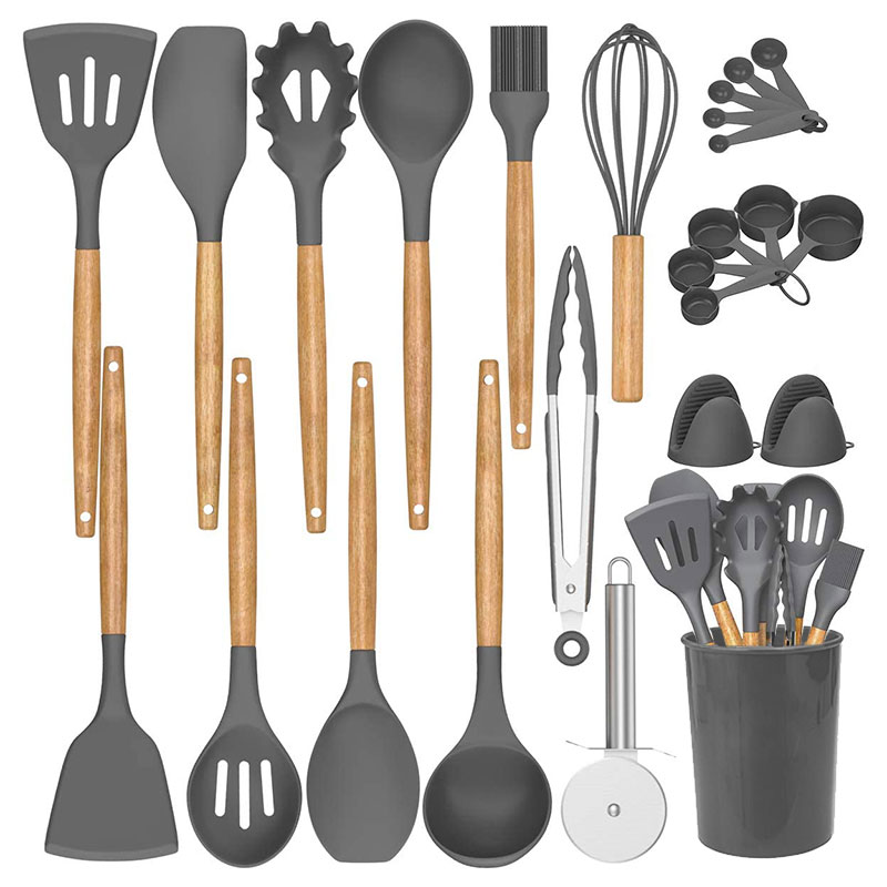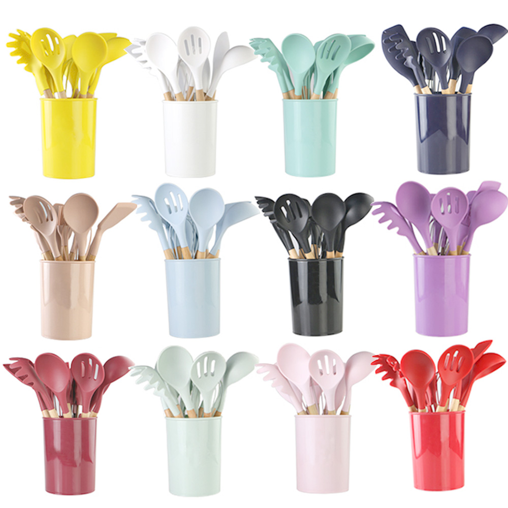 700 גרם מלאה של yf מותג Yf 12-קטע סיליקון ללא מקל סט סט עם ידיות עץ דגם YFC-038